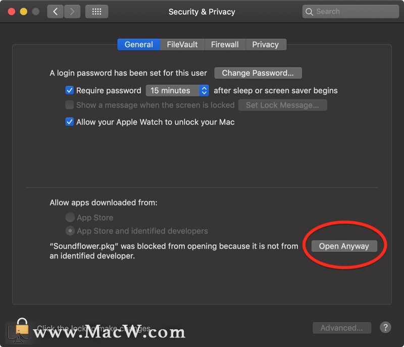 4.如果看到对话框询问您是否确定要打开它,请单击“打开”。如果你看到一个对话框,说包无法打开,点击OK,打开系统设置安全和隐私窗格,在常规选项卡中单击打开反正。