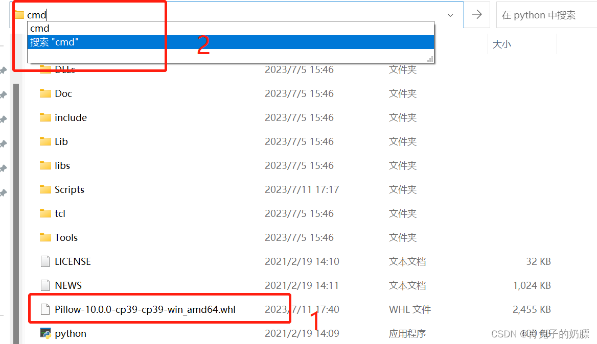 以防万一,可以直接在你下载安装PIL库的路径下打开cmd,然后输入pip install Pillow-10.0.0-cp39-cp39-win_amd64.whl,这样才不会出错。