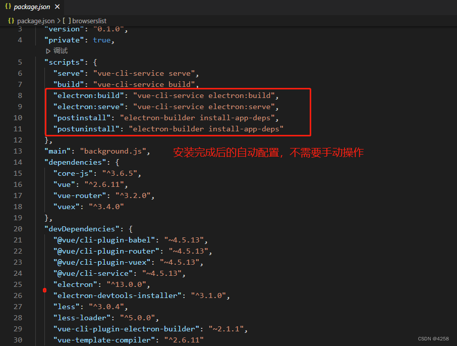 5.针对 electron-builer 打包的配置问题 ,在项目根目录下新建 vue.config.js 文件,如下图: