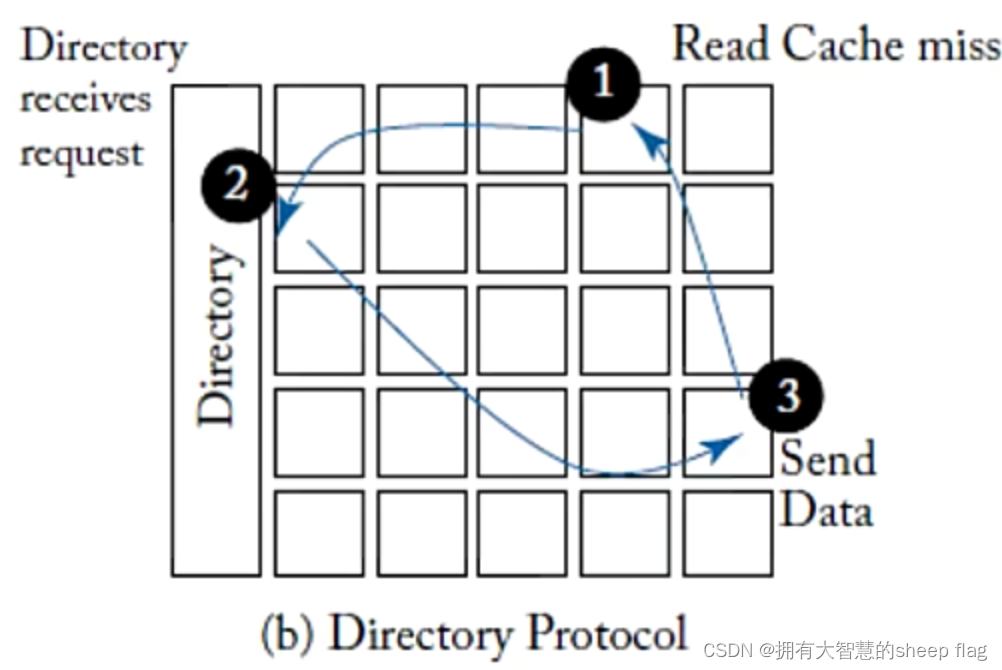 - directory:不依赖于任何隐式网络通信。基于点对点通信,可以减少一致性通信数量,具有较好的可拓展性。目录要记录副本持有cacheline的所有节点以及其状态信息。每个地址都会被分为到一个目录节点,将这个节点成为基节点,记录这个地址的全部信息。