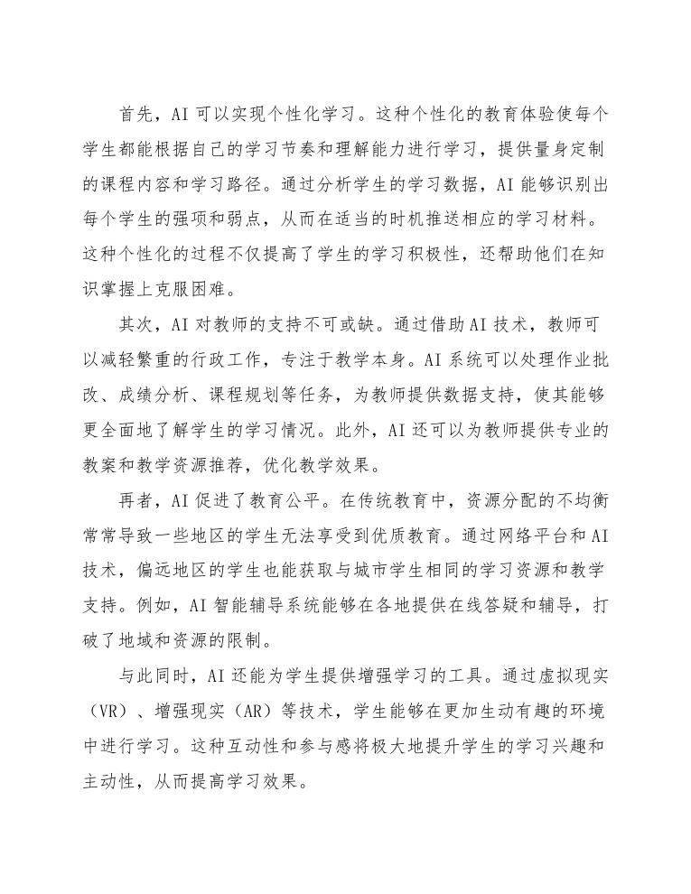 通过上述措施,AI不仅能助力教师减轻工作负担,更能提升学生的学习兴趣和参与感,推动基础教育的整体发展。
