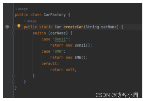 当时当想给添加别的汽车品牌的时候,就需要添加代码,违反开闭原则,需要修改工厂的代码