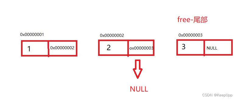 前一个链表结点地址模块指向NULL,则完成了单链表的尾部数据删除,如下面的逻辑实际图: