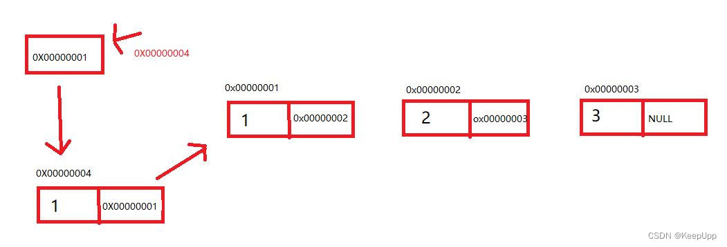 只需要将原链表的头地址,存入到新的节点地址部分中,再指向新节点,即可完成了数据的头部添