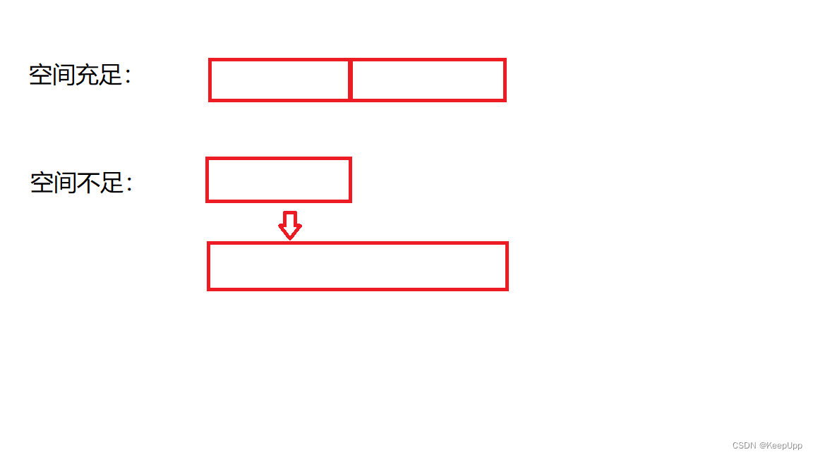 1.空间不足后需要增容,但是增容是需要代价的;如果需要增容的空间后面有足够的空间,则