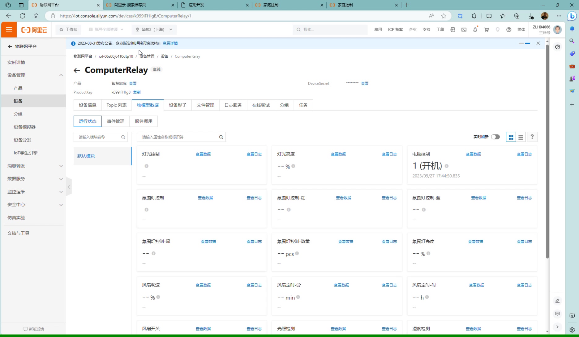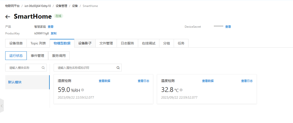 使用ESP-01S与阿里云物联网平台服务器的连接与配置(温湿度检测) 这里使用了阿里云官方提供的SDK,所以我们只需要配置产品和设备的信息然后调用AliyunIoTSDK::begin(espClient, PRODUCT_KEY, DEVICE_NAME, DEVICE_SECRET, REGION_ID);(这里提一下数据类型的匹配,代码里的温湿度数据为float类型,需要将产品功能定义里的数据类型也改成float类型,不然会不显示)这时打开设备-物模型数据就,成功显示了检测的数据,到这里就大功告成了!到这一步产品的发布就大功告成了,剩下的只需要配置代码即可。