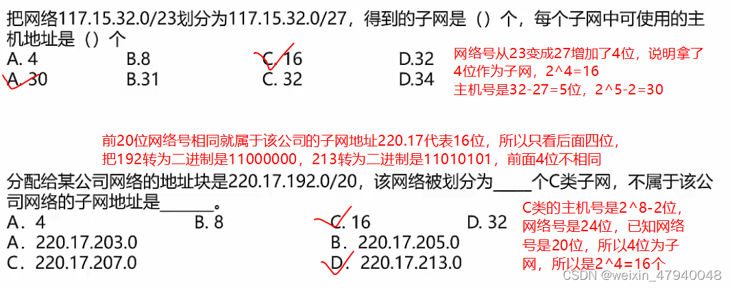 要注意的是:子网号可以为全0和全1,主机号不能为全0或全1,因此,主机数需要- 2,而子网数不用。