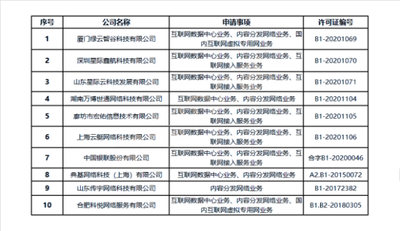 六、工信部公布了2020年第15、16批CDN牌照的企业名单