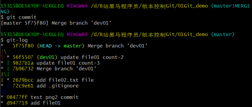 01Git_demo使用pull拉取命令 自动合并本地和远端分支