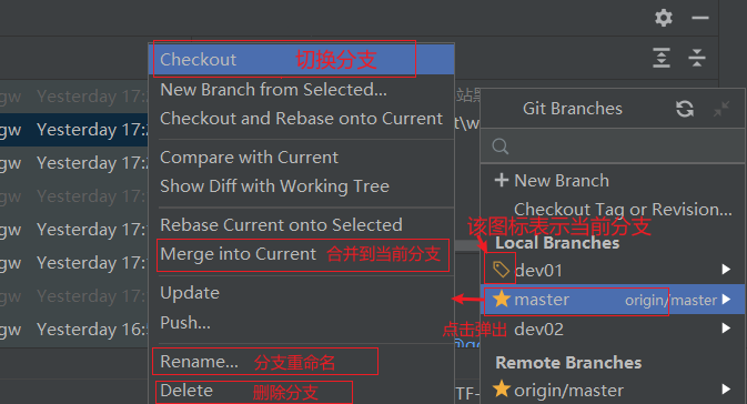 切换分支及其它分支相关操作