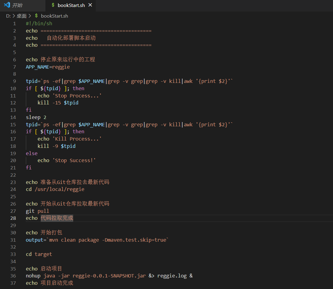 编写Shell脚本(可以实现拉取代码、编译、打包、启动)