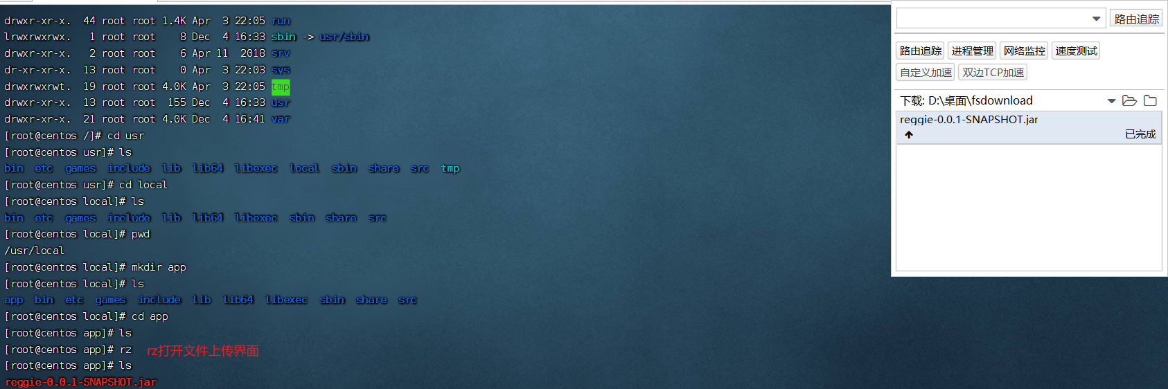 输入rz命令,打开文件上传界面