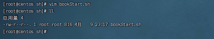 执行 vim bookStart.sh 后手动将脚本内容复制进去。