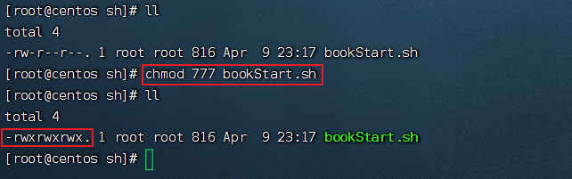 chmod 777 bookStart.sh # 为所有用户授予读、写、执行权限