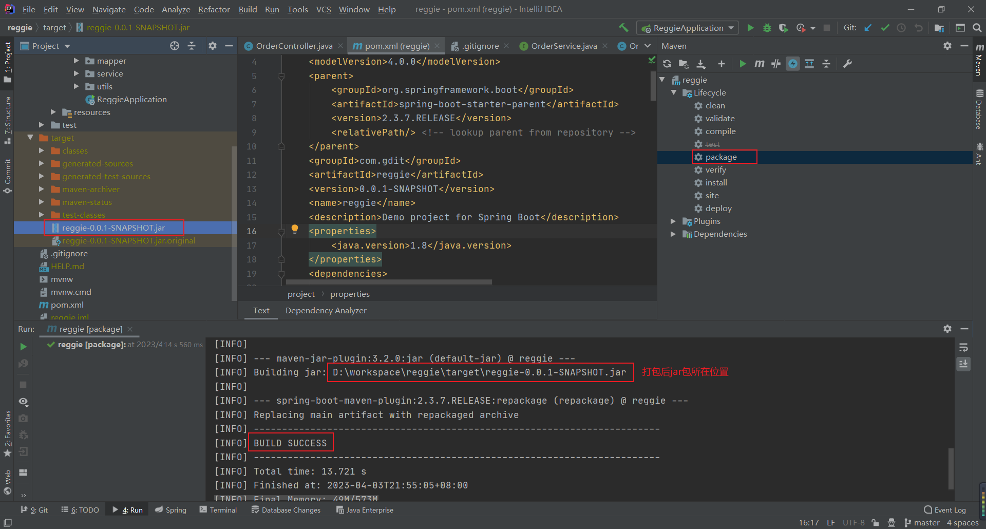 执行maven中的package命令