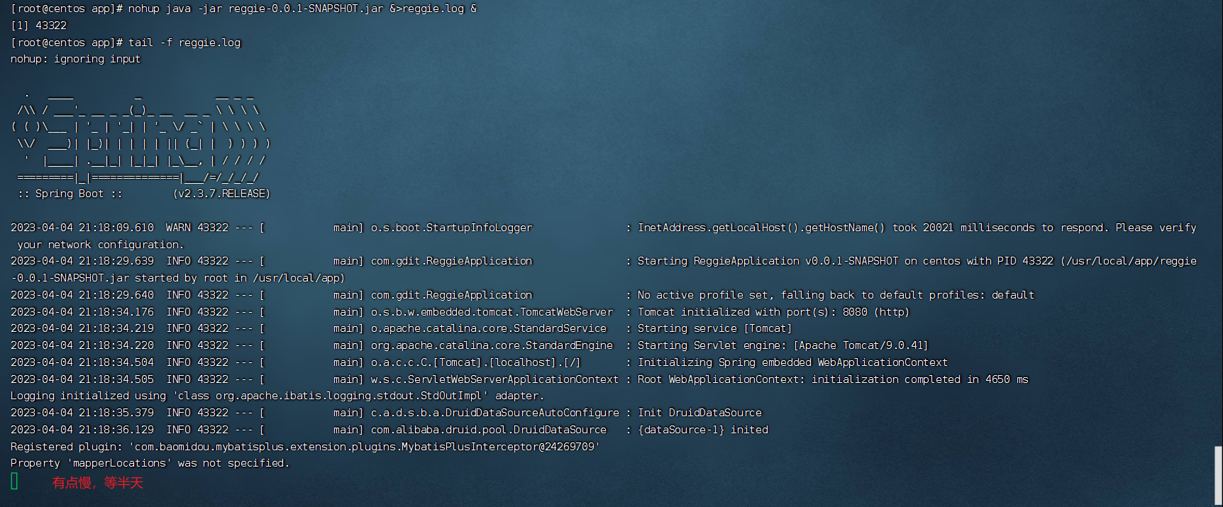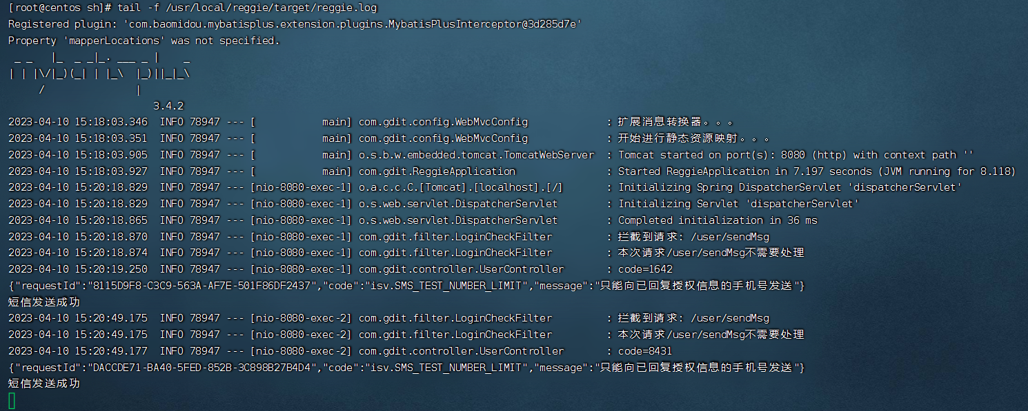 tail -f /usr/local/reggie/target/reggie.log # 跟踪查看日志文件