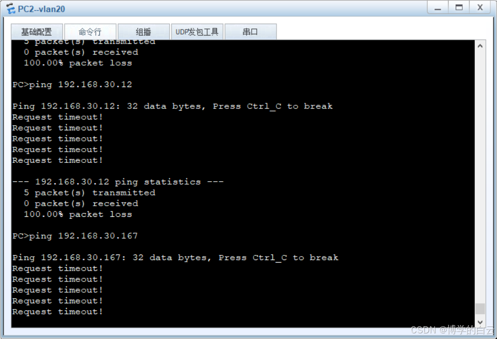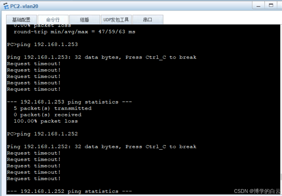 PC2 ping PC1、PC3、PC5、PC6不通验证: