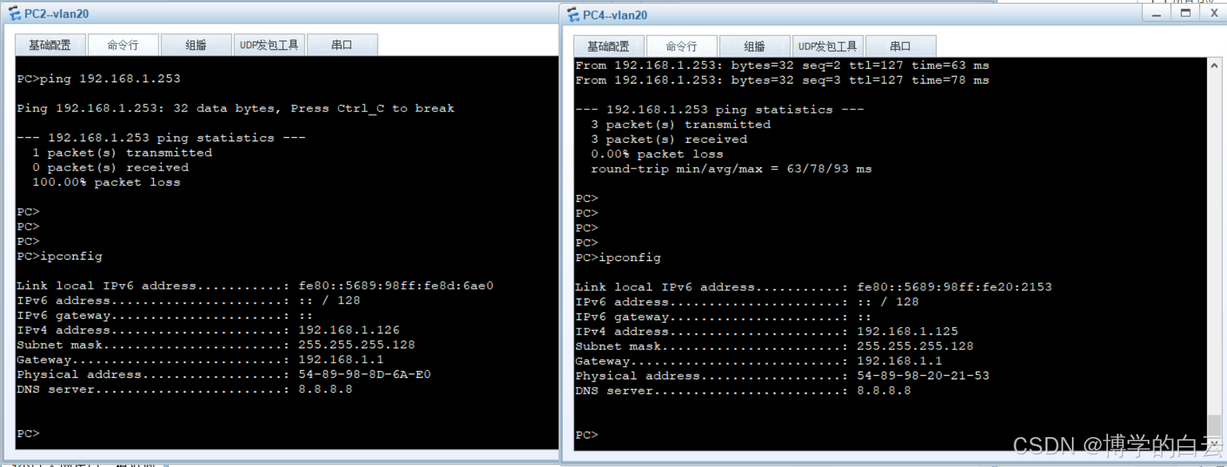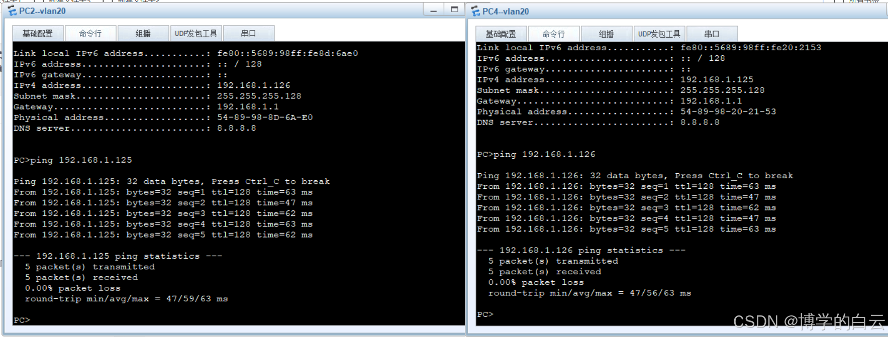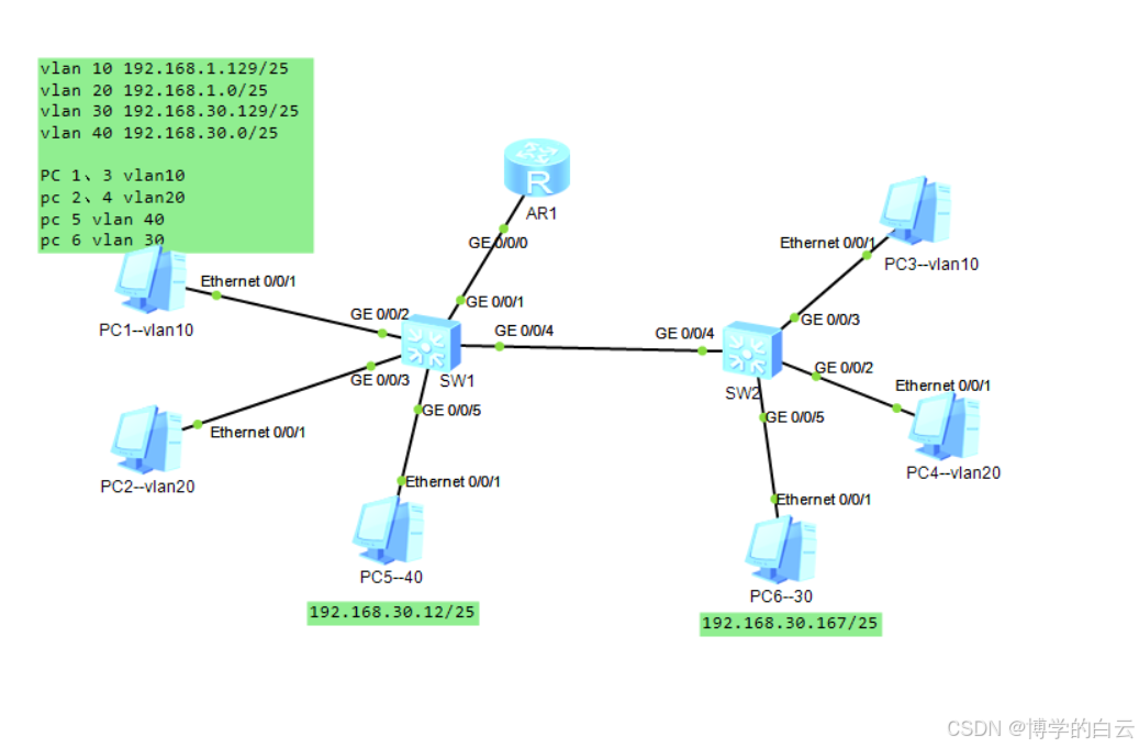 [SW2-Vlanif30]ip address 192.168.30.254 255.255.255.128