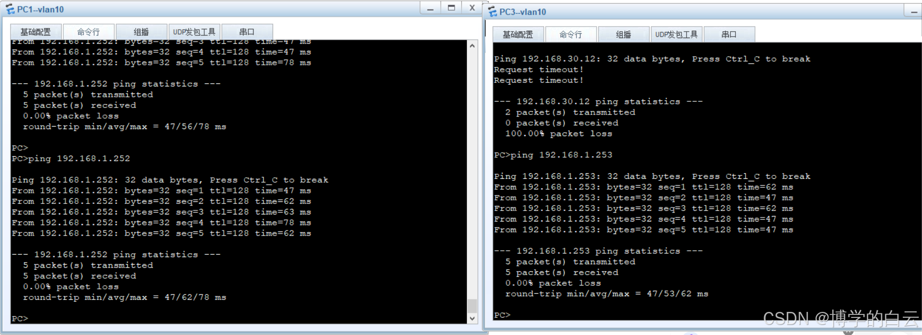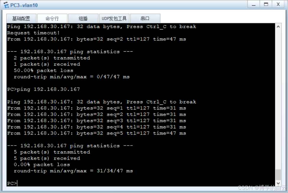 任务三:完成vlan10与vlan30不同vlan下的PC互通,