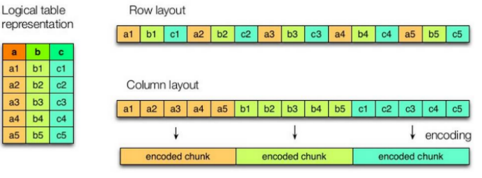 由于每一行中,列的数据类型不一致,导致不容易获得一个极高的压缩比,也就是空间利用率不高