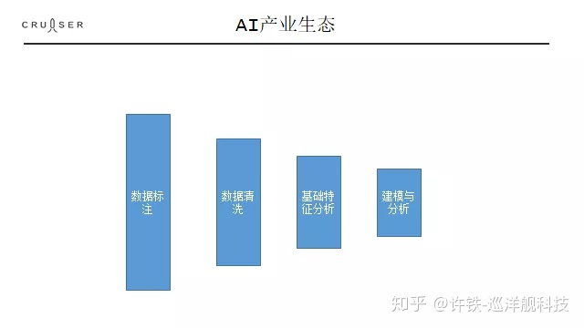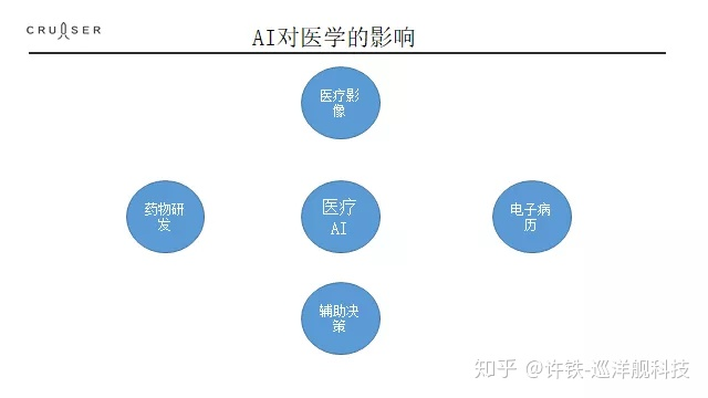 我们就用上面的观点来看AI对各个产业的影响, 我把这一类影响按大小分为三大类:1, 整个产品是一个AI算法:比如互联网, 移动医疗器械,自动驾驶, AI教育 2. 核心产品需要使用AI算法, 但未和用户形成闭环, 比如算法交易,保险, 智慧农业, 智能制造 3. 非核心产品使用AI算法, AI作为辅助服务, 这就几乎包含了所有的产业, 因为几乎所有产业都需要三部分:智能客服, 用户数据分析, 和知识图谱。
