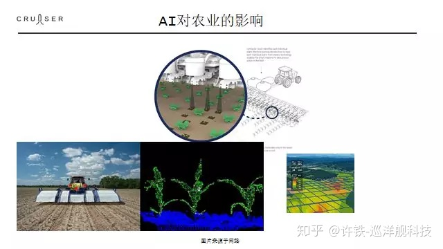 AI农业公司【prospera】已经开始布局这个AI农场的概念, 它们的视觉传感器, 可以做到连一个叶片都不放过,全面的监控每颗植物的健康风险,比如各类病害, 传感器把信号传到云上, 然后形成一个农场整体的情况报告, 并对整个农作物的收成进行预测。 另外, 一些卫星和无人机公司,比如佳格天地,也加入了这个阵营, 卫星和无人机,提供了对整个某片天地的墒情, 火情,虫害情况的信息,并却可以根据不同块田地的关联性(比如某些病虫害是转移的)进行长线预测, 这对农场在灾害前的重大决策干预,意义无需多言。
