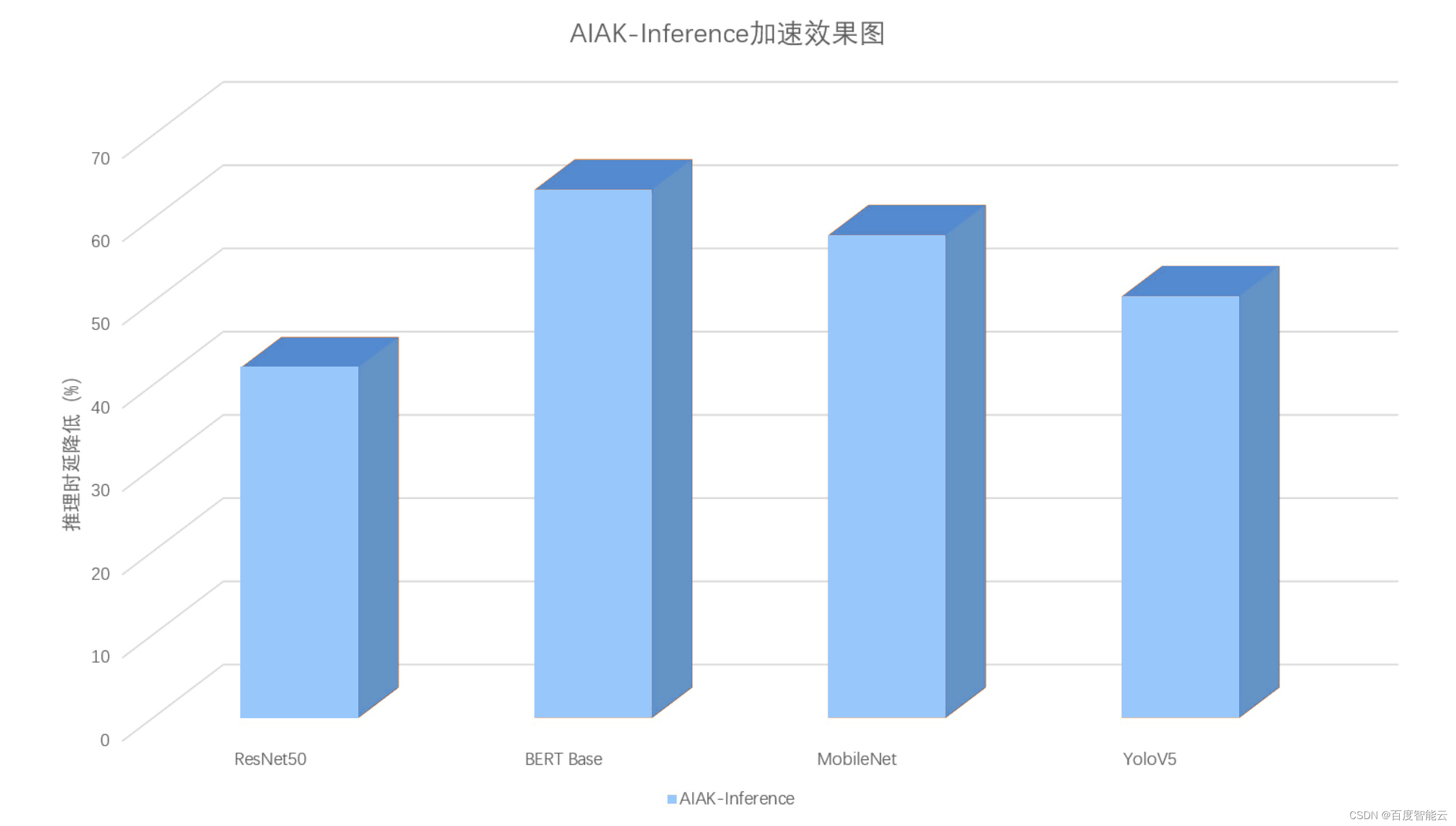 推理加速:AIAK-Inference通过图优化、算子融合和自研高性能算子库来提升推理效率,ResNet、Bert等经典模型时延降低40%~63%。