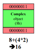 1.创建一个复数对象(实部虚部,2个 double)得到 8 byte (绿色区域)2.2个 cookie(记录整块内存大小)(一个cookie有 4byte) (橘色区域)