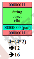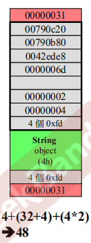 1.创建一个字符串对象(字符串本身只内含一个指针,所以它的大小是指针的大小 4 byte) (绿色区域)2.2个cookie(记录整块内存大小)(一个cookie有 4 byte) (橘色区域)