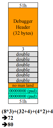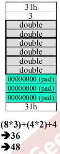 4.在VC中(其他的不一定是)图中有1格(4 byte)放数组大小,这里图中为数字3表示有3对double