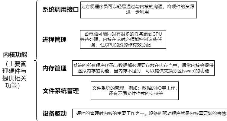 内核程序主要管理硬件,提供合理的电脑系统资源分配(包括CPU资源、内存资源等)因此只要硬件不同,内核就得要进行修改才行。而由于内核只会进行电脑系统的资源分配,所以在上面还需要有应用程序的提供,用户才能够使用系统。