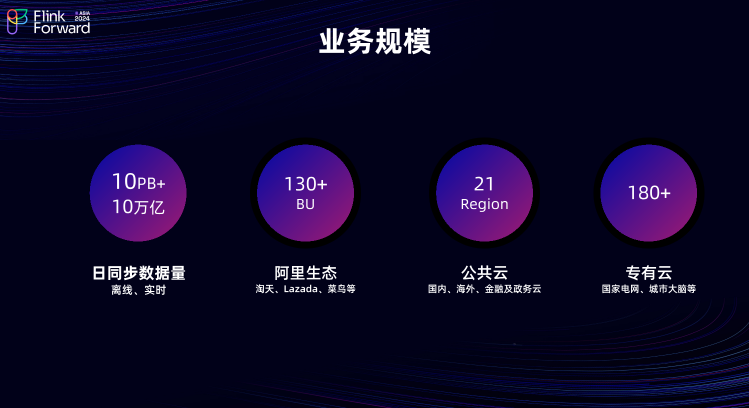 DataWorks 数据集成服务业务规模日同步数据量约为 10 PB ,数据条数则达到了约 10 万亿。同时DataWorks 数据集成服务于阿里集团 130 多个 相关BU ,覆盖 21 个公有云区域,以及 180 多个专有云客户,其中包括国家电网、城市大脑等。