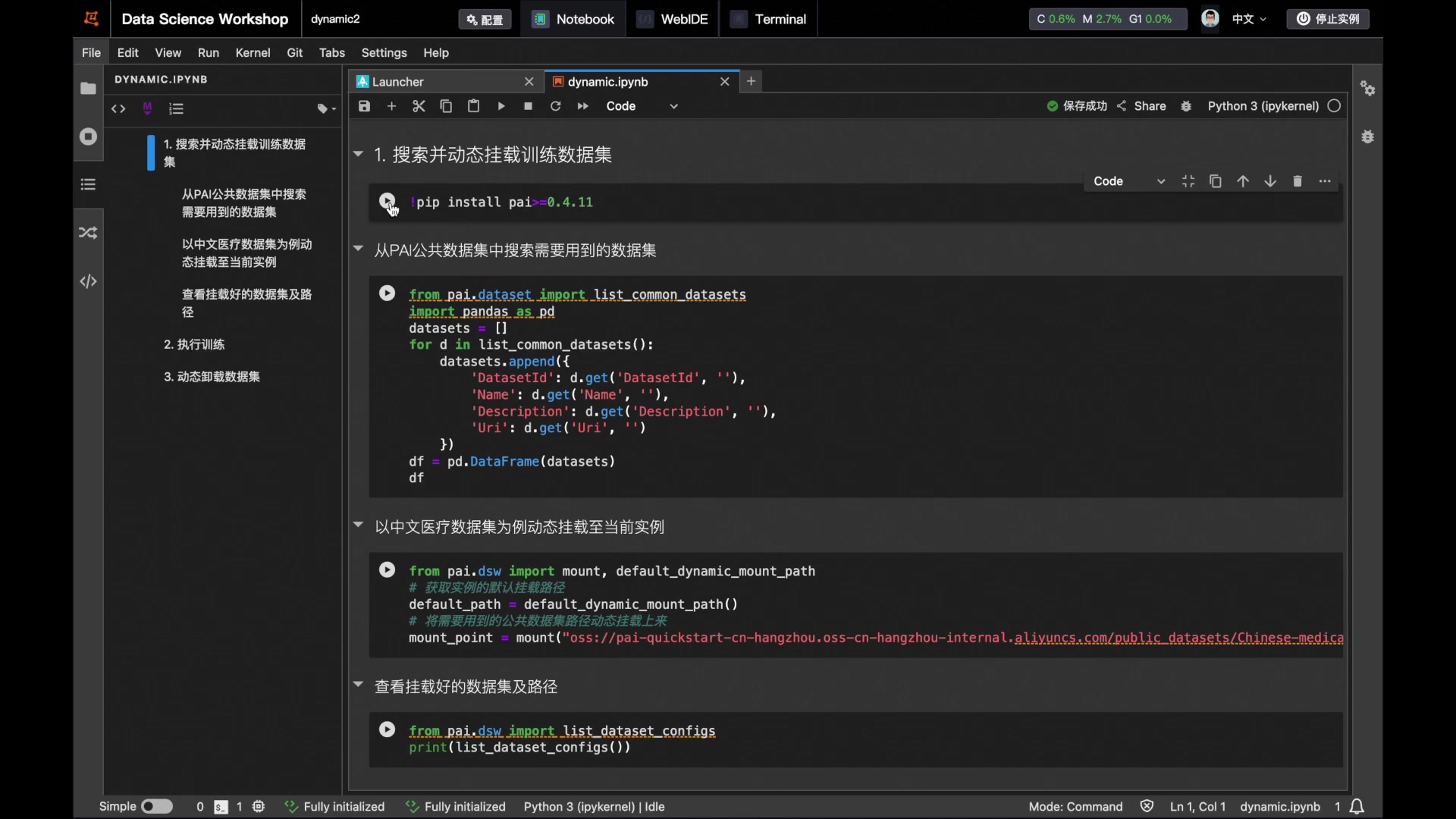跨越鸿沟:PAI-DSW 支持动态数据挂载新体验 本文讲述了如何在 PAI-DSW 中集成和利用 Fluid 框架,以及通过动态挂载技术实现 OSS 等存储介质上数据集的快速接入和管理。通过案例演示,进一步展示了动态挂载功能的实际应用效果和优势。