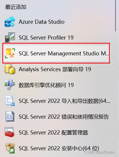 (4)按【Windows】键,在最近添加里打开SQL Server Management Studio Management Studio 19,并且拖到桌面,增加快捷方式