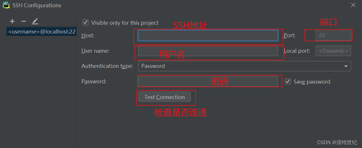 - Host为前面提到的远程服务器ip地址xxx.xxx.xxx.xxx;