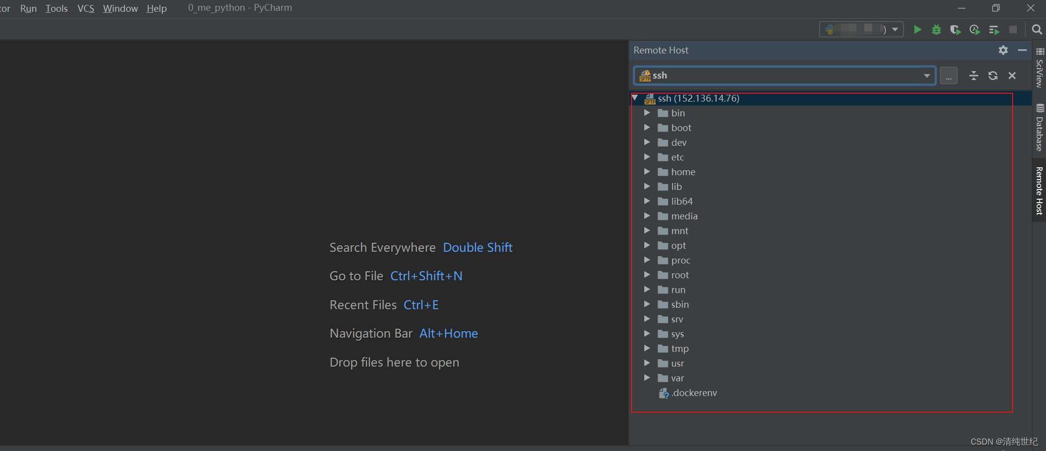 在PyCharm界面中找到右边的Remote Host,这里查看到服务器端的全部文件信息。