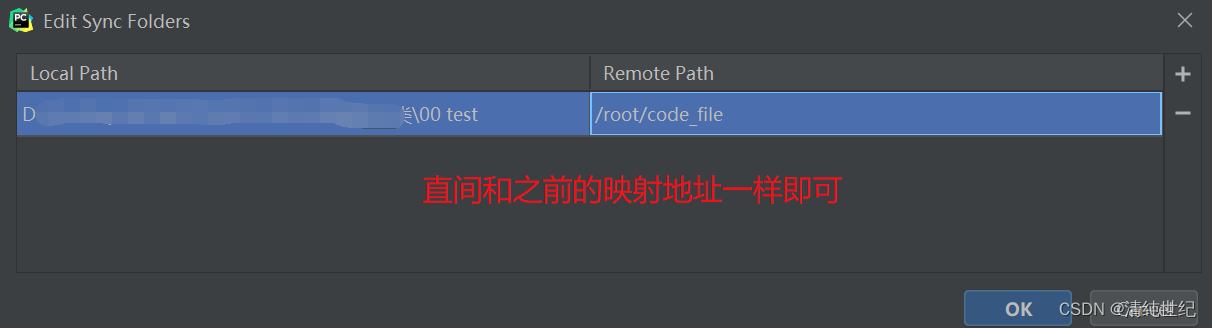 为了后续本地与服务器之间同一项目可以内容同步,我们还需要设置二者之间的项目路径映射,即本地项目在远程服务器中存放的位置: