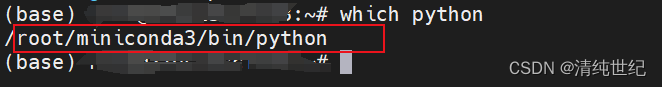即可查询python解释器的路径,如果使用的是Anaconda中的虚拟环境,需要先进入虚拟环境才可以使用该命令查询相应虚拟环境的python路径。