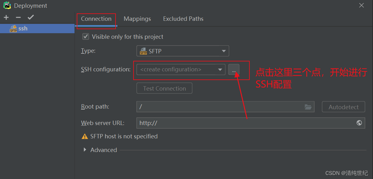 点击SSH配置右侧的"…",进行SSH内容设置: