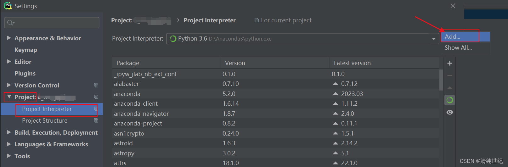 (1)进入设置,将服务器中的Python解释器添加到Pycharm中: