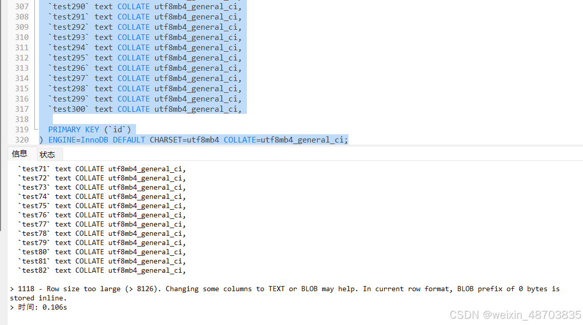 -------------------------------------------------------结束--------------------------------------------------------如果想要修改my.ini配置文件,在保存的时候会出现拒绝访问,这时候要对my.ini右键属性,点安全,权限编辑,选中Users,添加写入权限,保存即可。:查看innodb_strict_mode 默认结果为ON,把他关了,就可以执行美化后的sql了,(应该哪里添加都可以,没试)