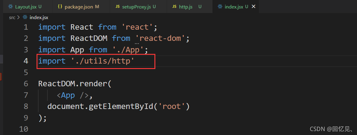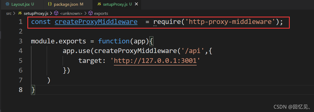 配置跨域的文件需要在src目录下创建setupProxy.js文件,写法固定