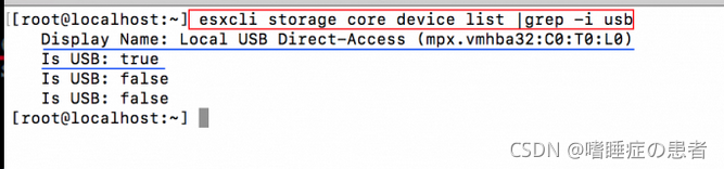 1、ssh至ESXI主机,在不接入USB硬盘的情况下输入以下命令