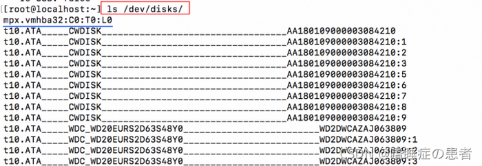 3、输入以下命令,列出USB硬盘的信息,显示为:mpx.vmhba32:**:**:** (每个USB硬盘信息不相同)
