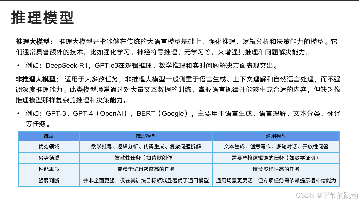 1. 推理模型与通用模型的区别