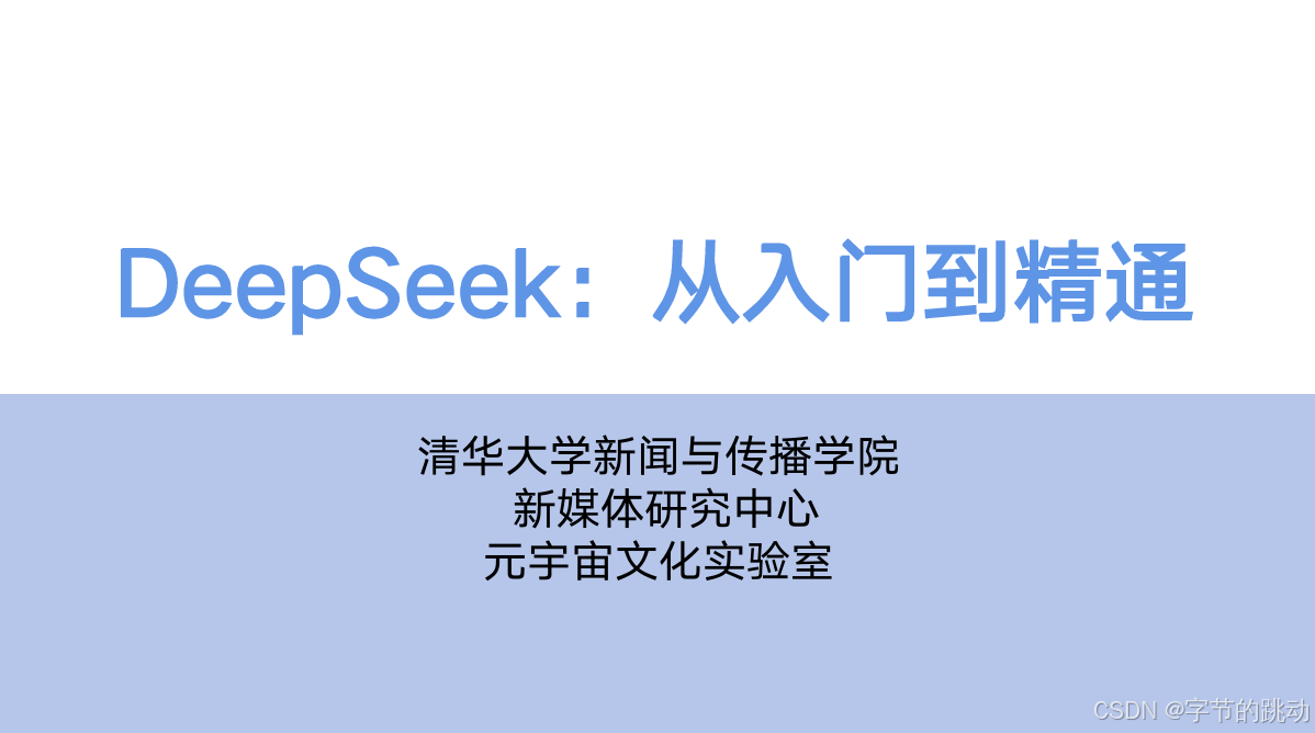随着今天人工智能技术的飞速发展,熟练掌握前沿的 AI 工具已成为提升个人和企业竞争力的关键。今天,我们为大家带来一份深度解析与资源推荐——清华大学新闻与传播学院新媒体研究中心元宇宙文化实验室出品的《DeepSeek:从入门到精通》。这份长达 104 页的报告,将带你全面了解 DeepSeek,从基础概念到高级应用,助你在 AI 领域更进一步。