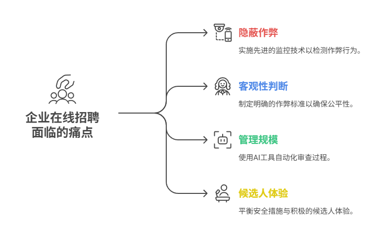 ⚠️ 关键价值:通过“事前预防+事中干预+事后追溯”闭环,既降低作弊概率,又规避法律风险,同时提升候选人对公平性的感知。
