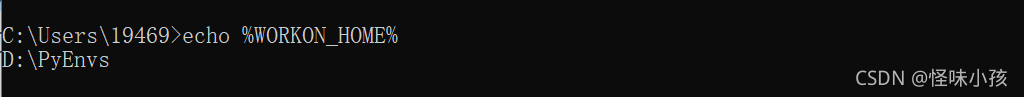 4、使用echo %WORKON_HOME%可查看配置是否成功,如果路径正确,可创建虚拟环境了