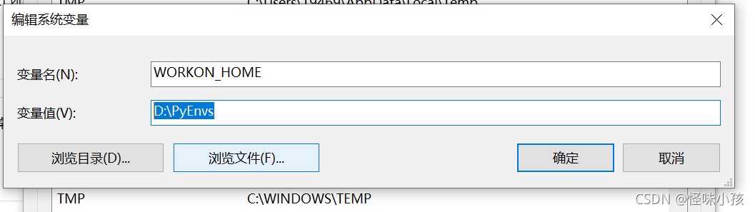 2、配置环境变量WORKON_HOME: