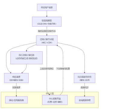 边缘计算与CDN的融合本质上是构建了一个“云-边-端”三级协同的分布式系统。其整体运作流程和核心组件可以用下图来概括:
